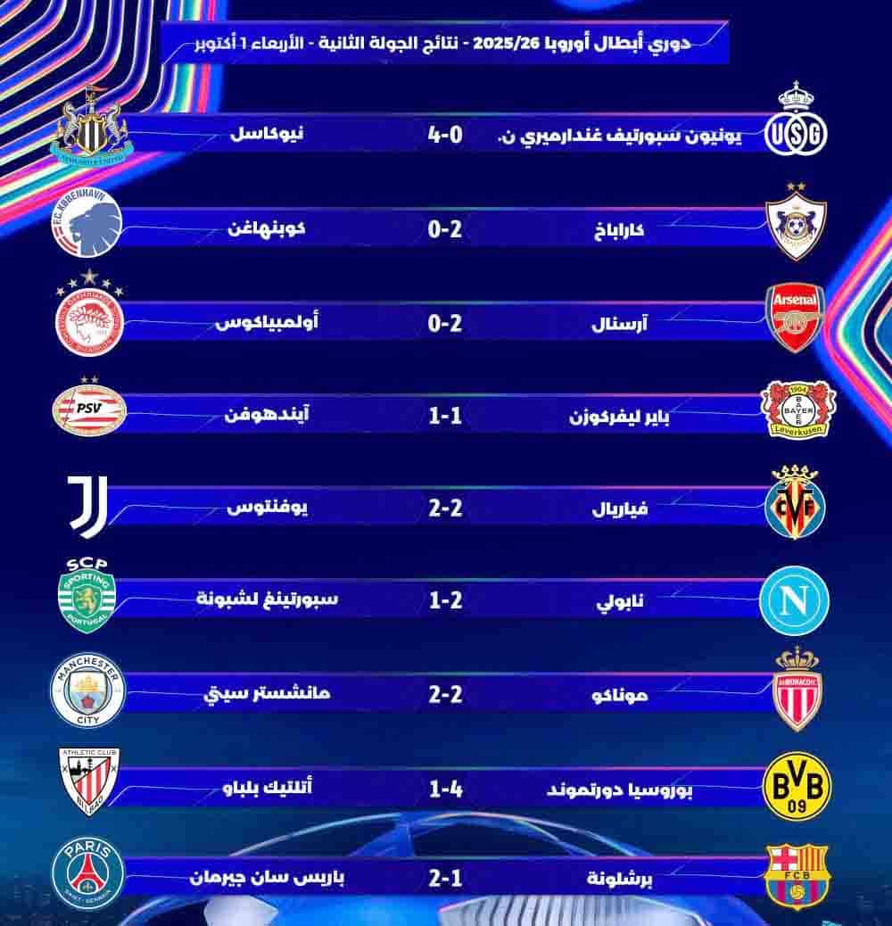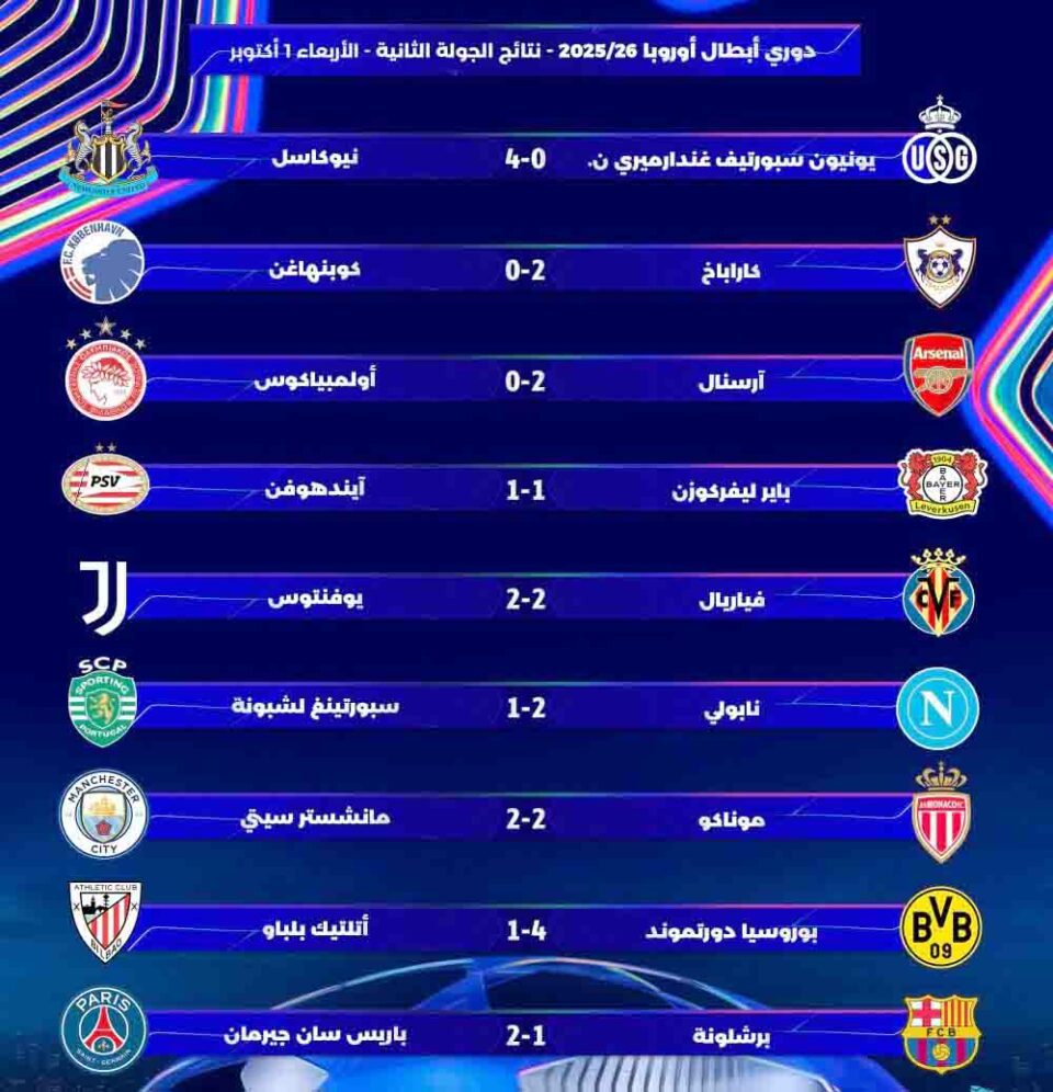 نتائج مباريات الاربعاء من دوري أبطال أوروبا