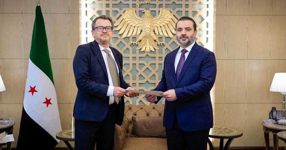 استقبل وزير الخارجية أسعد الشيباني كلاً من سفير المملكة العربية السعودية الدكتور فيصل المجفل، وسفير جمهورية إيطاليا ستيفانو رافانيان، وسفير جمهورية أرمينيا روبن خارازيان، وسفير جمهورية بنغلاديش الشعبية نور هلال سيف الرحمن، حيث تسلّم منهم نسخاً من أوراق اعتمادهم سفراء لبلدانهم لدى الجمهورية العربية السورية.