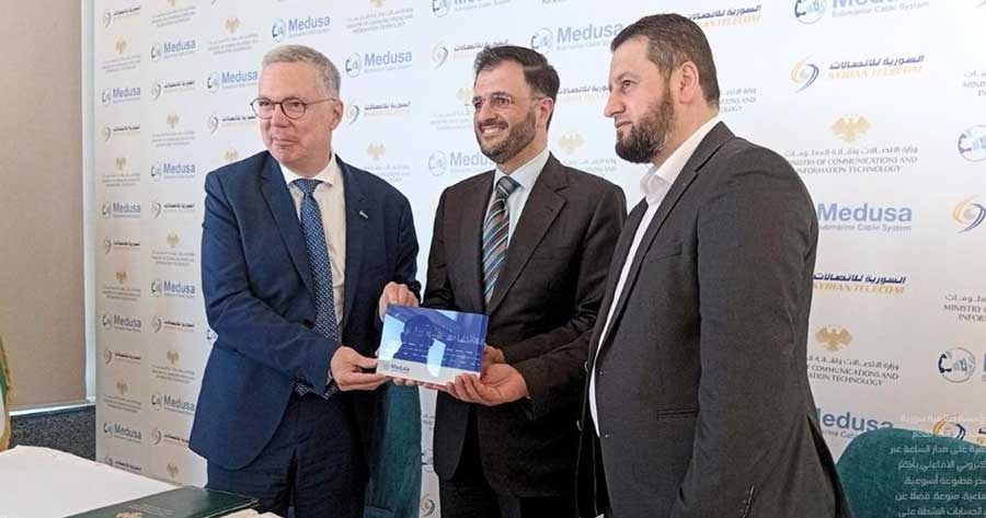 وقعت الشركة السورية للاتصالات وشركة “ميدوسا” اتفاقية لإنزال أول كبل اتصالات بحري في محافظة طرطوس، بحضور وزير الاتصالات السوري، عبد السلام هيكل، ويبدأ تنفيذ المشروع من محافظة طرطوس، ويشمل كل المحافظات السورية.