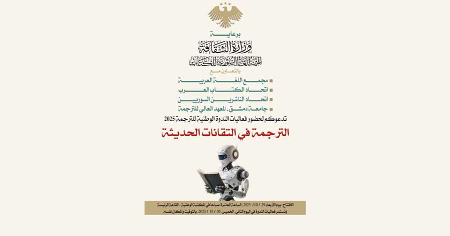 انطلقت الندوة الوطنية للترجمة تحت عنوان: “الترجمة في التقانات الحديثة”، بمشاركة نخبة من الأدباء والنقاد المترجمين المتخصصين، وذلك في المكتبة الوطنية بدمشق.