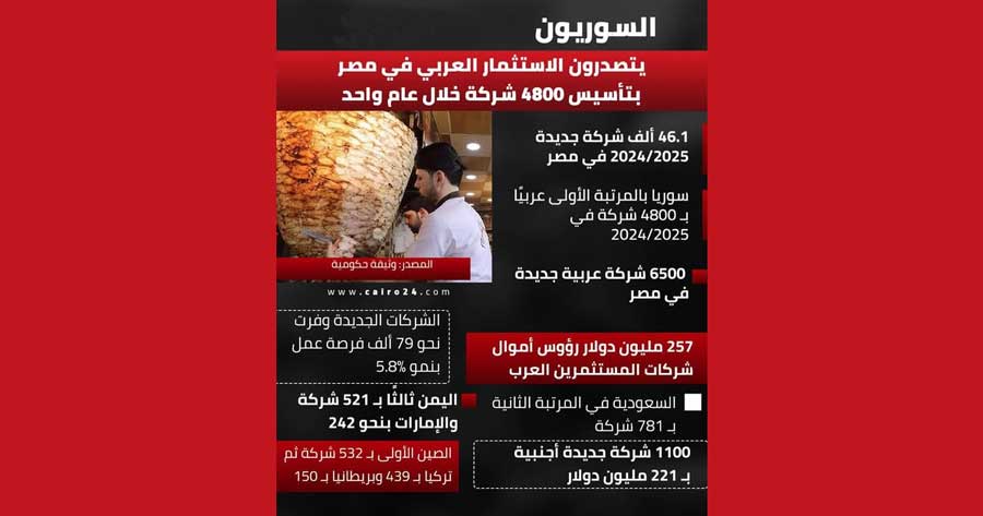 خلال عام السوريون يتصدرون الاستثمار في مصر تأسيس 4800 شركة 05.11.202505.11.20253 ✉ TG WA in X f مشاركة