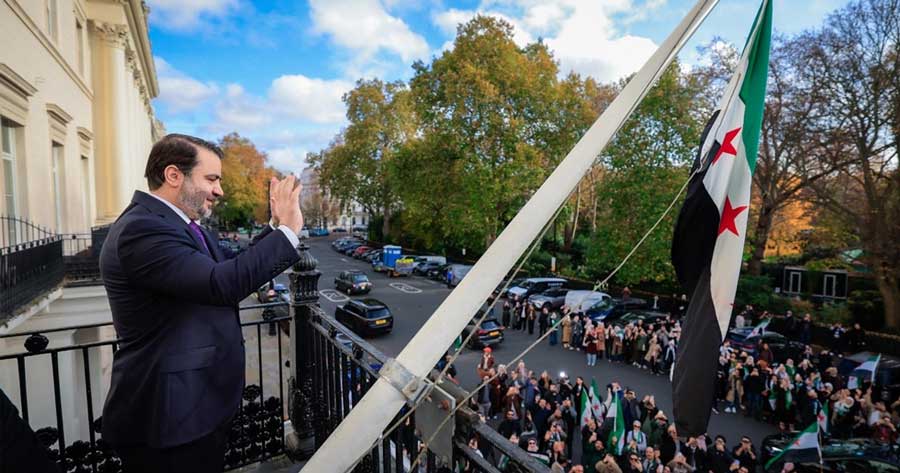 الشيباني يرفع علم سوريا في السفارة السورية ببريطانيا 13.11.202513.11.20255 ✉ TG WA in X f مشاركةموقع الصدىوزير الخارجية والمغتربين السيد أسعد حسن الشيباني يرفع علم الجمهورية العربية السورية فوق مبنى السفارة السورية في العاصمة البريطانية لندن، إيذاناً باستئناف عملها الرسمي بعد إغلاقها 14 عاماً.