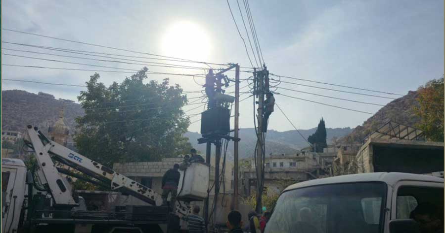 مؤسسة الكهرباء تصلح الأضرار في بيت جن 29.11.202529.11.20257 ✉ TG WA in X f مشاركةموقع الصدىتواصل مؤسسة الكهرباء أعمالها في بلدة بيت جن بريف دمشق، لإصلاح الأضرار التي لحقت بالشبكة جراء الاستهداف الأخير للبلدة، وذلك ضمن جهودها لإعادة التيار وتأهيل البنية التحتية.