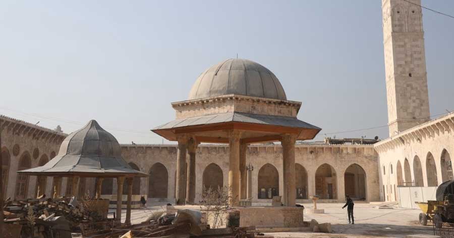 استؤنفت أعمال الترميم للمسجد الأموي الكبير في حلب، بإشراف مباشر من مديرية أوقاف محافظة حلب، في إطار الجهود المستمرة لإعادة تأهيل هذا المعلم التاريخي العريق، الذي يُعد من أبرز المساجد في المدينة وأقدمها.