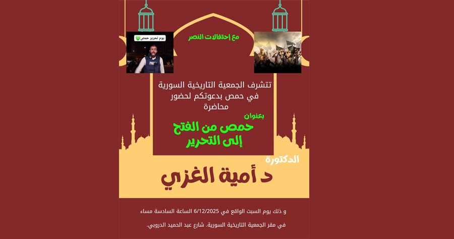 تزامناً مع احتفالات شعبنا بذكرى التحرير وضمن نشاطات الجمعية التاريخية السورية نتشرف بدعوتكم لحضور الأمسية الثقافية مساء يوم السبت 6/12/2025م في مقر الجمعية التاريخية. وجودكم يسعدنا ويشرفنا.