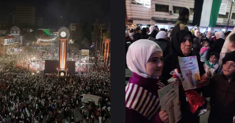 شهدت ساحة الساعة بمدينة حمص مساء الإثنين ٨ كانون الأول ٢٠٢٥ احتفالاً شعبياً حاشداً إحياءً للذكرى السنوية الأولى للتحرير شارك المئات من أبناء حمص ومناطق مختلفة من سوريا في هذا الحدث حيث رفعوا العلم الوطني ورددوا الأهازيج والأناشيد الوطنية التي تعبر عن إرادة الشعب السوري وتضحيات الشهداء