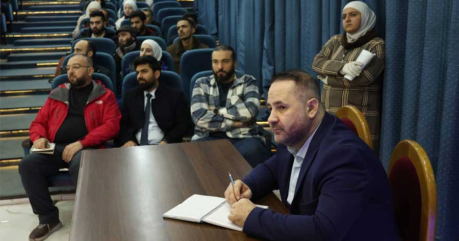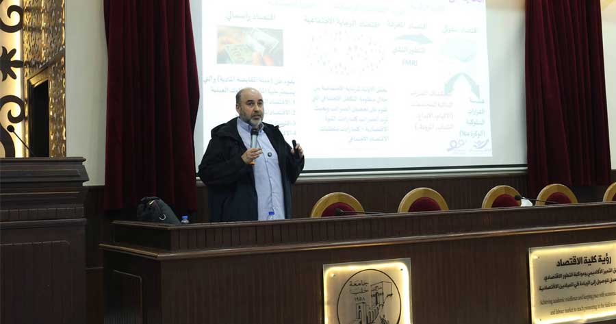 برعاية محافظة حلب، نظمت جامعة حلب، الأربعاء 10 كانون الأول، محاضرة أكاديمية بعنوان: (اقتصاد الإلهام كمسار لنهوض سورية تطبيقات تبدأ من جامعة حلب)، وذلك على مدرج كلية الاقتصاد في جامعة حلب.