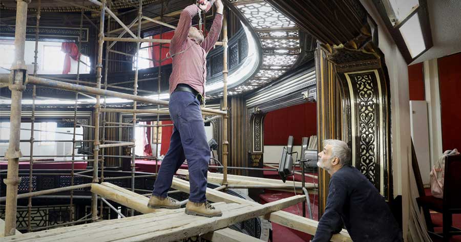 المهندسة أصالة قدسية من فرق العمل المشرفة على عملية إعادة التأهيل، أوضحت أن المجلس يشهد إعادة تأهيل كاملة بما ينسجم مع الهوية البصرية الجديدة لسوريا، وأن المشروع يشمل العناصر الخشبية القديمة التي يعود آخر تأهيل كامل لها إلى عام 1995، عندما شهد المجلس آخر أعمال صيانة شاملة له آنذاك.