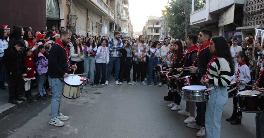 وبداية عزفت فرقة الكشاف ألحان الميلاد وأغاني بابا نويل لتعطي البهجة للحضور.