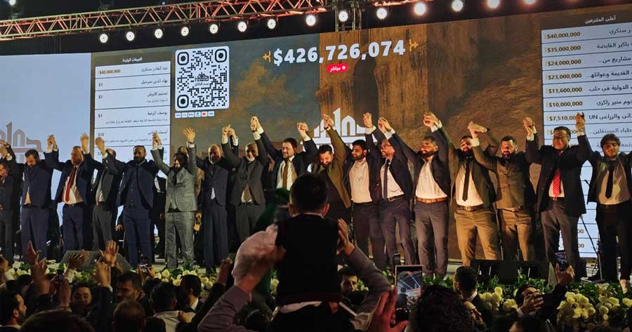 وكانت الحملة انطلقت بمشاركة رسمية وشعبية واسعة، حيث سجل اليوم الأول حصيلة بلغت 150 مليون دولار، فيما ارتفعت التبرعات في اليوم الثاني إلى 271 مليون دولار، لتصل في اليوم الثالث والأخير إلى أكثر من 426 مليون دولار، وهو ما يعكس حجم التفاعل الكبير من أبناء المحافظة داخل سوريا وخارجها، إضافة إلى مساهمات رجال الأعمال والمؤسسات الأهلية والمنظمات المجتمعية.