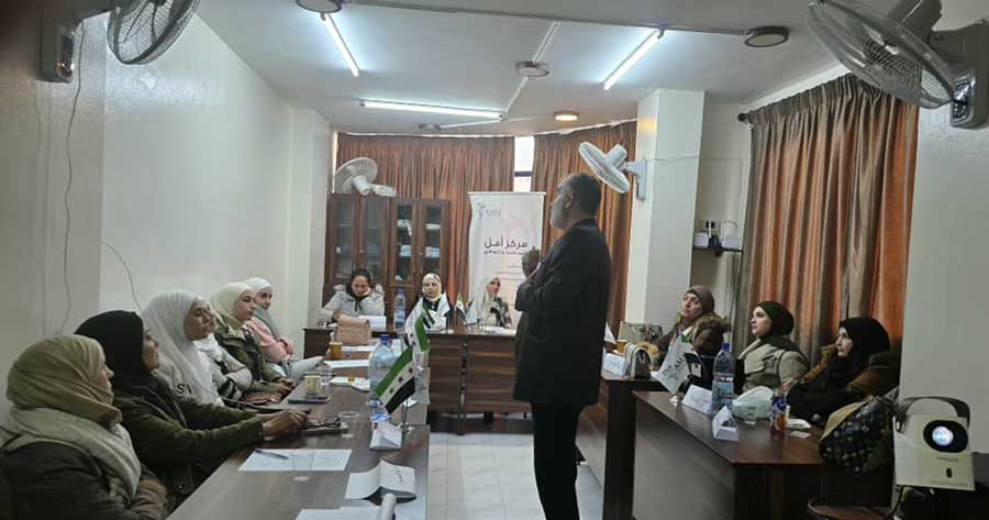 نظم مركز أمل للمناصرة والتعافي جلسة حوارية قانونية بعنوان «الطلاق في القانون السوري»، وذلك يوم الاثنين 22 كانون الأول 2025، في مقر المركز بمحافظة حمص، بإدارة المحامي والمستشار القانوني عمار أحمد بروك، وذلك في إطار سعي المركز إلى رفع الوعي القانوني المجتمعي.