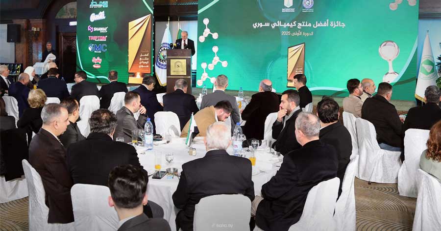 أعلنت غرفة صناعة دمشق وريفها، والجمعية الكيميائية السورية عن المنتجات الفائزة بجائزة أفضل منتج كيميائي سوري لعام 2025، التي جرى إطلاقها في أيلول الماضي بهدف دعم الصناعة الوطنية وتسليط الضوء على تميز المنتجات الكيميائية السورية ورفع قدرتها التنافسية في الأسواق المحلية والعالمية، وذلك خلال احتفالية في فندق البوابات السبع بدمشق.