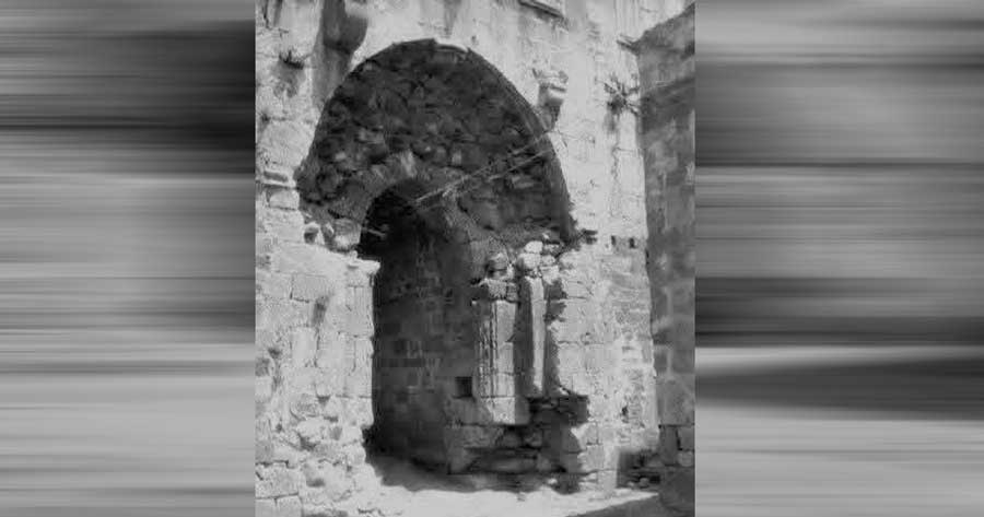 ويشير عدد من المعمّرين إلى أن نقشاً كان يعلو الباب يحمل شعار السلطان نور الدين زنكي على شكل زهرة الزنبق. كما ورد ذكره في بعض المصادر التاريخية باسم «باب الدير»، نسبةً إلى دير سمعان الذي يُعتقد أنه كان قائماً قرب الموقع الذي دُفن فيه الخليفة الأموي عمر بن عبد العزيز، حيث يقع جامعه وقبره اليوم على مقربة من باب الدريب من الجهة الشرقية، في حي جب الجندلي.