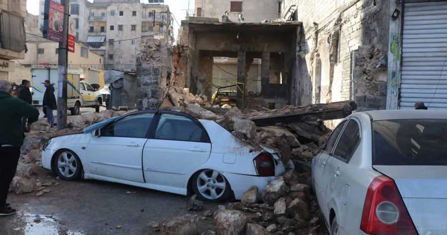انهيار محل تجاري متهالك مؤلف من طابق واحد، اليوم الأربعاء 11 شباط 2026 بحي الميدان بمدينة حلب، ما تسبب بأضرار مادية فقط، وذلك جراء سقوطه على سيارتين في المكان، وعلى الفور استجابت فرق الدفاع المدني السوري في مديرية الطوارئ وإدارة الكوارث في حلب، وقامت بتفقد مكان الانهيار وسحب السيارتين المتضررتين وإزالة الركام عن الشارع وتأمين المكان.