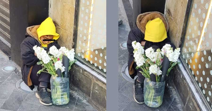 قضيت أشغالي في المكان وعدت مجدداً فشاهدت الطفل متكوراً على نفسه من شدة البرد وهو يغط في نوم عميق، وبهدوء أعدتُ الوردة إلى السلة التي أمامه ومشيت.