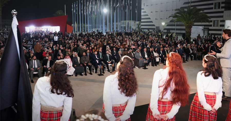 واستُهل الحفل بفقرة فنية غنائية قدّمها كورال “زهرات التاريخ” المؤلف من 20 طفلة بقيادة المايسترو منصور أورمي، حيث أدين نشيد “بوابة التاريخ” الذي تمحور حول العلم ونصر أرض سوريا وإعادة إعمارها بالعلم والقلم، في لوحة فنية جسدت رسالة المعرض وأبعاده المعرفية.