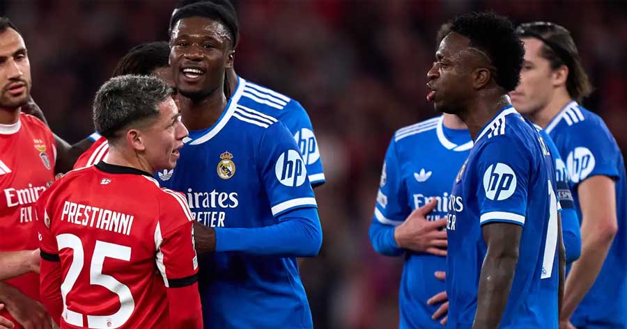 وكان فينيسيوس قد اتهم لاعب النسور البرتغالية، الأرجنتيني جيانلوكا بريستياني، بتوجيه إهانة عنصرية إليه خلال المباراة التي انتهت بفوز الميرينجي (1-0)، بهدف سجله البرازيلي نفسه من تسديدة رائعة.