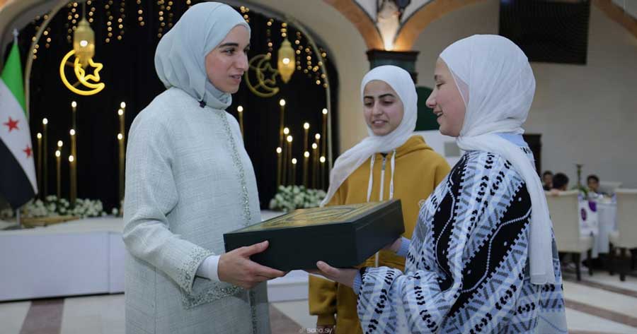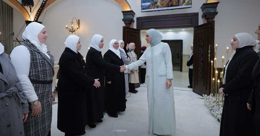 في لفتة إنسانية، زارت عقيلة فخامة الرئيس أحمد الشرع السيدة لطيفة الدروبي ميتم الجمعية الخيرية الإسلامية في حمص، واطلعت على أقسام الدار وبرامجها التعليمية والتأهيلية المتنوعة، بما في ذلك معرض الرسوم وقسم الروبوت والمخبر العلمي.