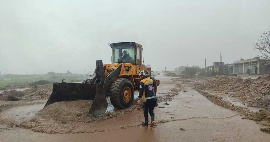 تواصل فرق الدفاع المدني السوري في وزارة الطوارئ وإدارة الكوارث جهودها في الاستجابة لتداعيات المنخفض الجوي المترافق بأمطار غزيرة في محافظات حلب وإدلب وحماة والرقة.