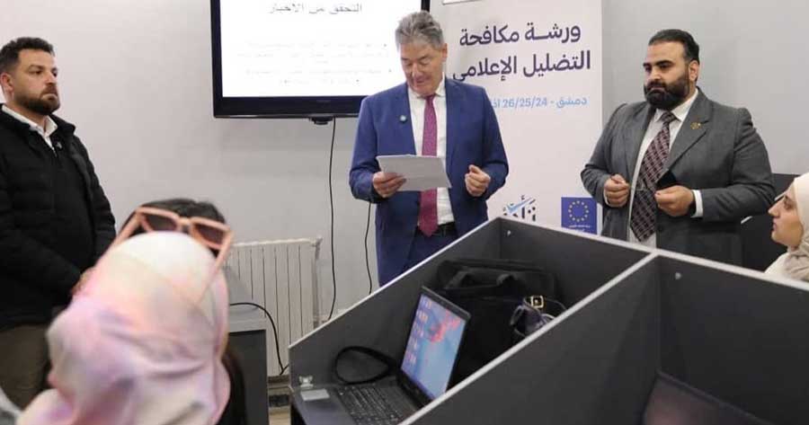 انطلقت في كلية الإعلام بجامعة دمشق ورشة تدريبية متخصصة، بعنوان “تمكين الصحفيين الشباب في مواجهة التضليل الإعلامي”، التي تنظمها الكلية، بالتعاون والشراكة مع بعثة الاتحاد الأوروبي في سوريا، ومنصة “تأكد” الإعلامية.