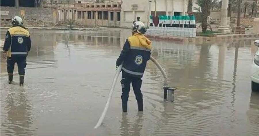 استجابت فرق الدفاع المدني السوري التابعة لمديرية الطوارئ وإدارة الكوارث في حمص اليوم الخميس 26 آذار، لشفط مياه في ساحة المتحف بمدينة تدمر في ريف حمص الشرقي نتيجة للمنخفض الجوي الذي تشهده المنطقة.