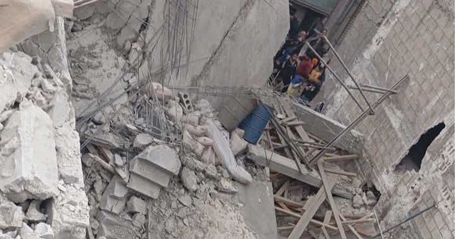 انهيار مبنى قيد البناء في حي الأشرفية في مدينة حلب، اليوم 1آيار 2026، ما أدى إلى إصابة أحد المواطنين إضافة إلى وقوع أضرار مادية.