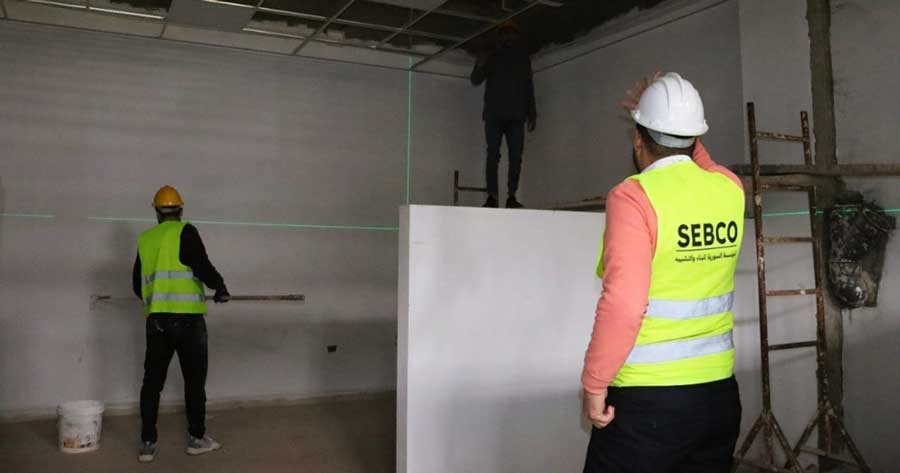 تتابع ورشات المؤسسة العامة للبناء والتشييد أعمالها في مشروع تأهيل الكتلة الأولى من مبنيي كليتي التربية والحقوق في جامعة حمص، تمهيداً لتحويلها إلى عيادات تخصصية ومكاتب إدارية لصالح كلية طب الأسنان.
