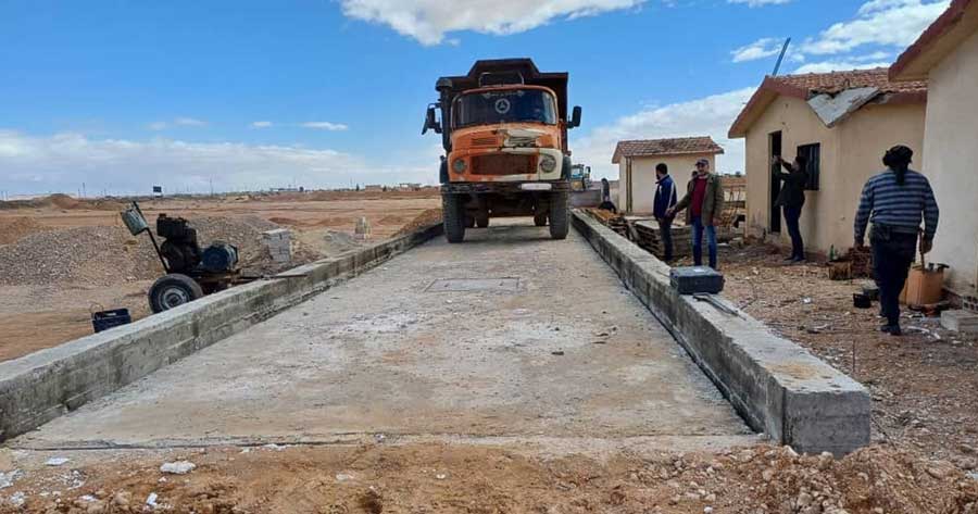 كما يشمل استخدام القبان وزن كميات الحجر الكلسي المستخرجة من موقعي السكري وأبو الفوارس في ريف تدمر، ضمن خطة تحسين آليات العمل والاستثمار.